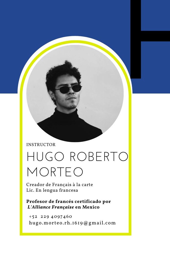 Salut! Mi nombre es Hugo Roberto Morteo Fomperosa y soy creador de Français à la carte. Este proyecto de difusión y enseñanza de la lengua y cultura francesa nace a partir de una reflexión personal... En 2020 vivimos (en plural) un gran episodio para la humanidad de esta época, un "reset" que nos obligó a replantearnos muchas cuestiones. Enfermé on s'est rencontré...